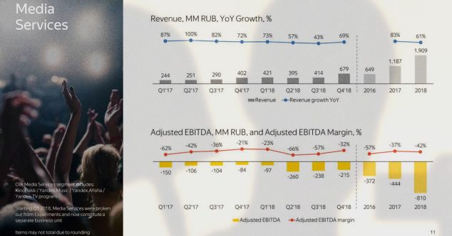 Яндекс подсчитал, что блок «Медиасервисы» в 2018-м году сгенерировал отрицательную прибыль в 810 миллионов рублей.
