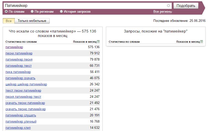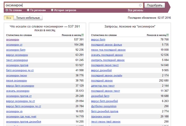 В Yandex Wordstat можно смотреть даже, сколько людей ищет что-либо в каком-то конкретном регионе. Лайфхак для организаторов: хотите привезти в свой регион артиста, но не знаете, соберет он или нет – посмотрите сперва, сколько людей в вашей области ищут этого артиста.