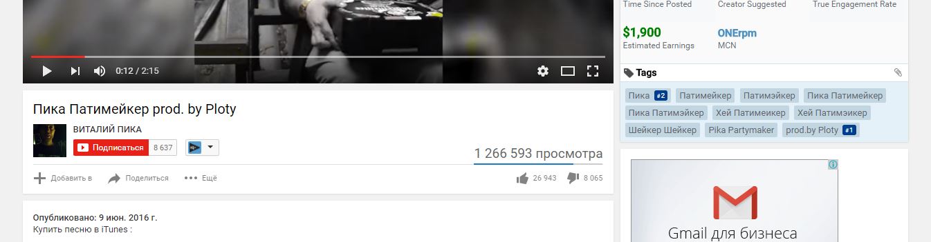 Кое-как найдя официальный клип, я удивился – там было всего 1 266 593 просмотра и полный провал по тэгам.
